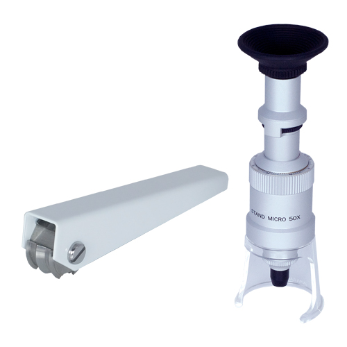 操作簡單, 先選定刀頭, 然后在被測工件上劃線(要?jiǎng)澩钢恋撞?, 使用顯微鏡(鏡片上有刻度)和照明光源測量所劃線的楔形接口的一邊(如上圖箭頭所指斜坡的投影距離), 即可算出涂層的厚度。