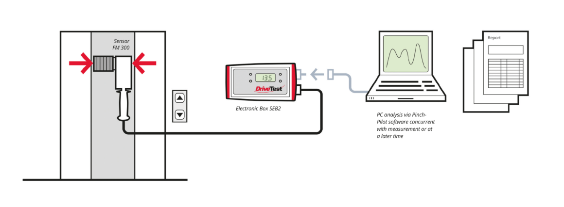 FM300傳感器 測量范圍:0–750 N 測量公差:±3牛頓或3%,以較大者為準 剛度:25牛頓/毫米 間隙寬度:145–510毫米 面積:58毫米 測量技術:應變電橋 尺寸:290 x 140 x 60 毫米 重量:1.7公斤 | SEB2顯示單元 數(shù)據(jù)記錄模塊(顯示單元SEB2),配備LCD顯示屏、LED狀態(tài)指示燈、按鈕和串行接口 可選的PC控制測量 由9V塊狀電池供電 板載實時時鐘 可存儲約100次測量數(shù)據(jù) 傳感器與PC接口 峰值力和有效力的顯示 通過/未通過評估 | 軟件 多語言(德語、英語、意大利語、法語、西班牙語) 力與時間的圖形顯示 相關參數(shù)的計算 根據(jù)不同標準進行評估 支持用戶自定義標準 打印報告 數(shù)據(jù)導出(Excel、CSV、PDF) |